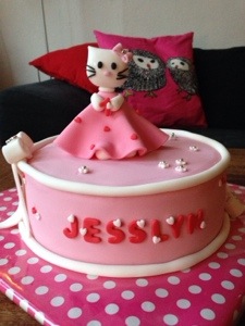 Het eerste taartje dat op de planning stond was dit zoete Hello Kitty taartje voor de allereerste verjaardag van Jesslyn. Het taartje is gevuld met twee lagen melkchocoladebotercreme.
